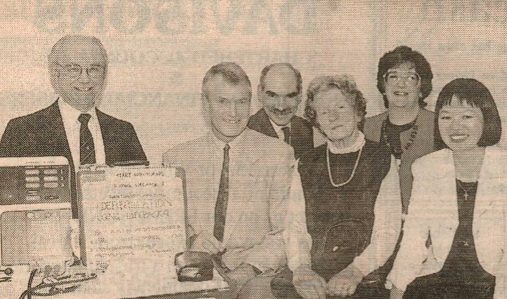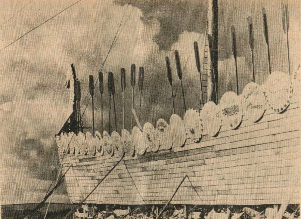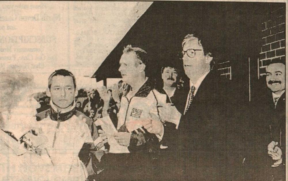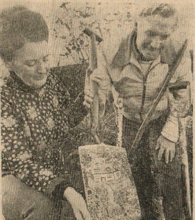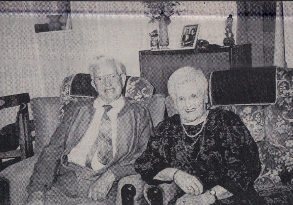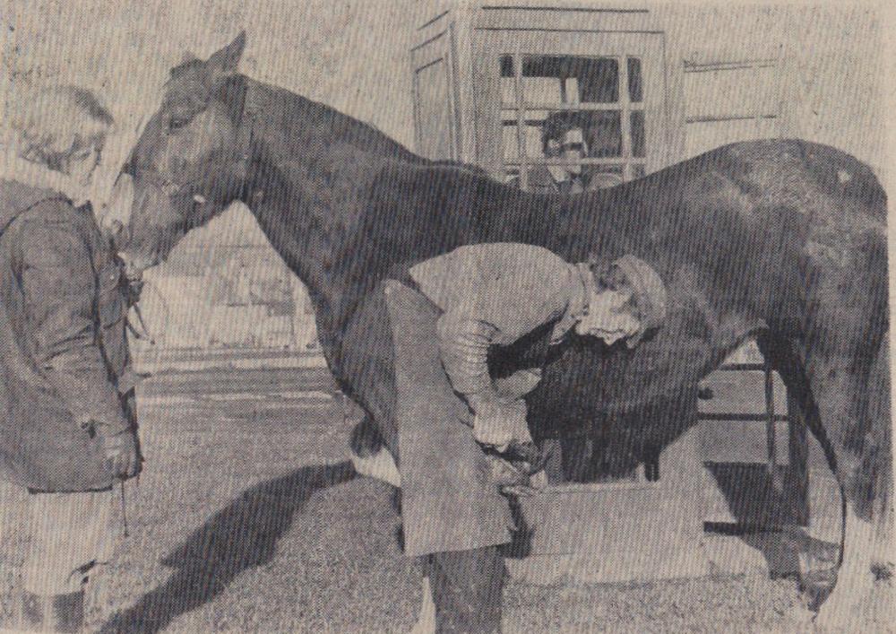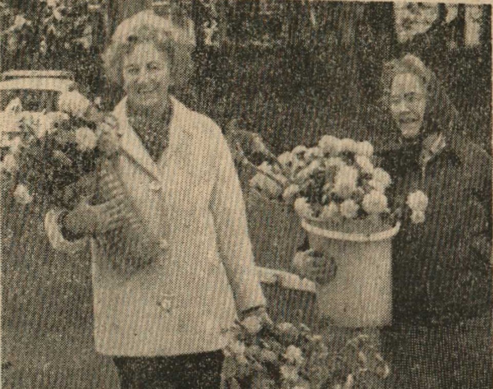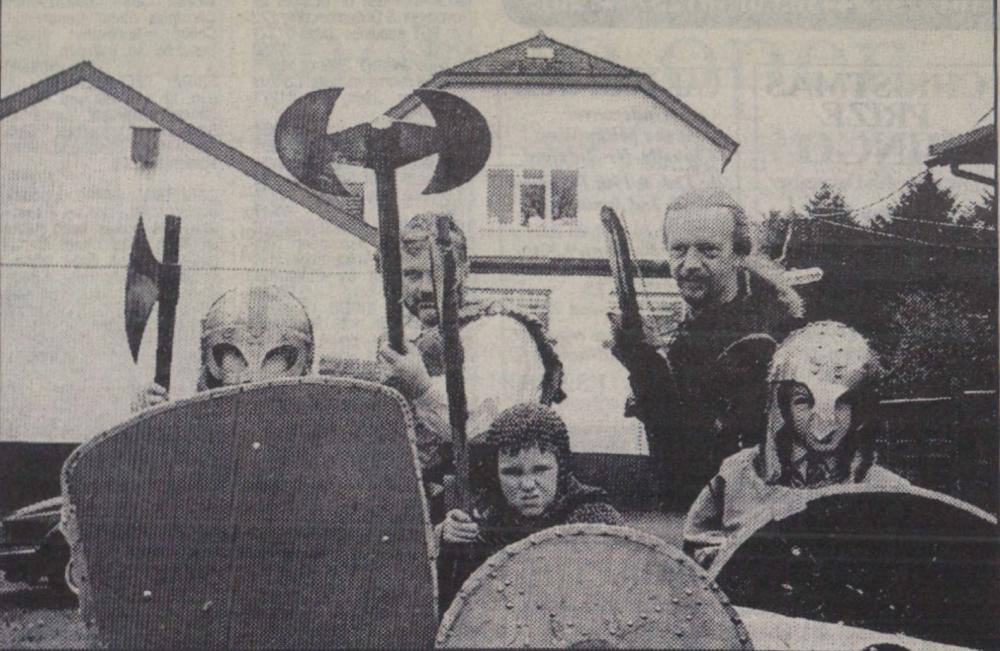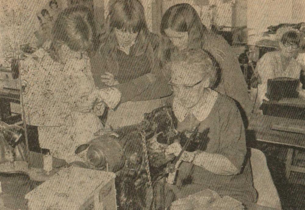 Mr Bill Finn, Gordon Harris, Graham Moore, Mike Harris, Jimmy Harris, Len Daniel, Billy Evans and Roy Drew wait to tuck into a plate of turkey.