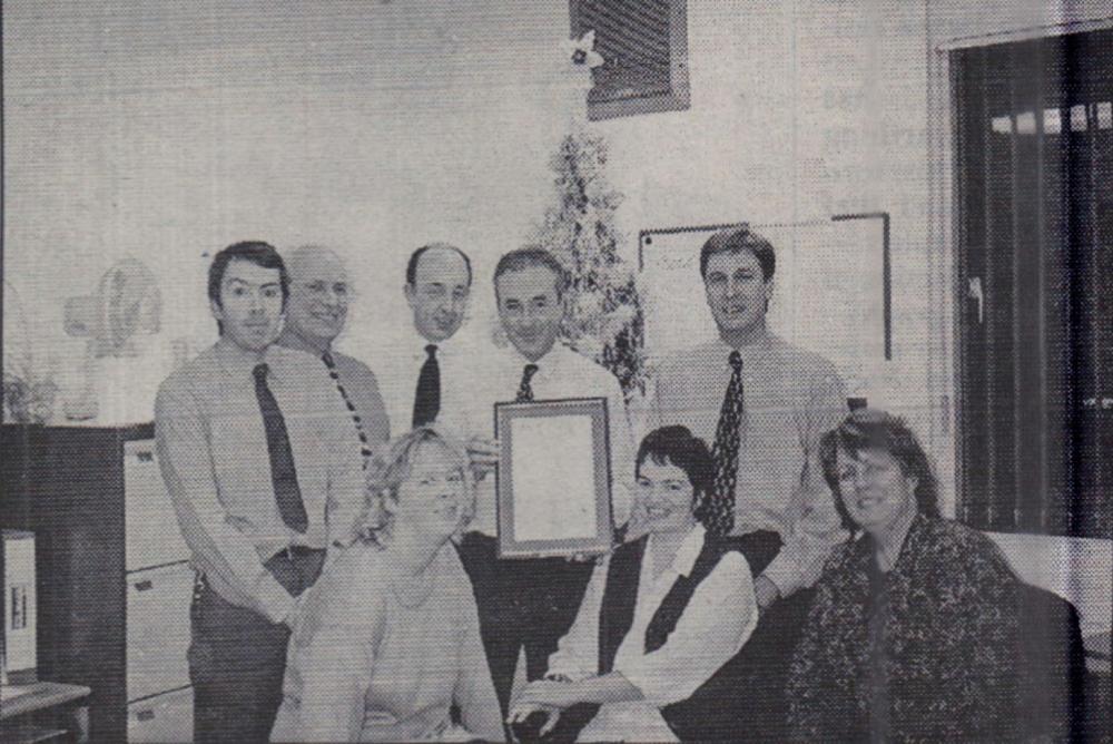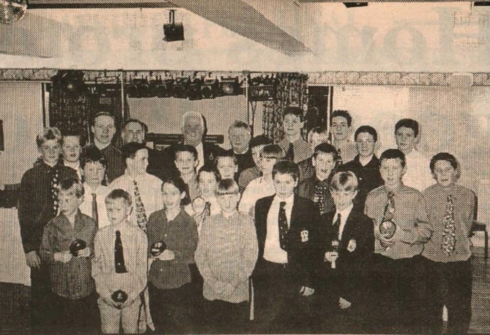 On behalf of Hartland A.F.C., Ron Watson receives the championship trophy for the Kingsley League Division 1.