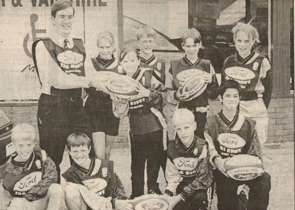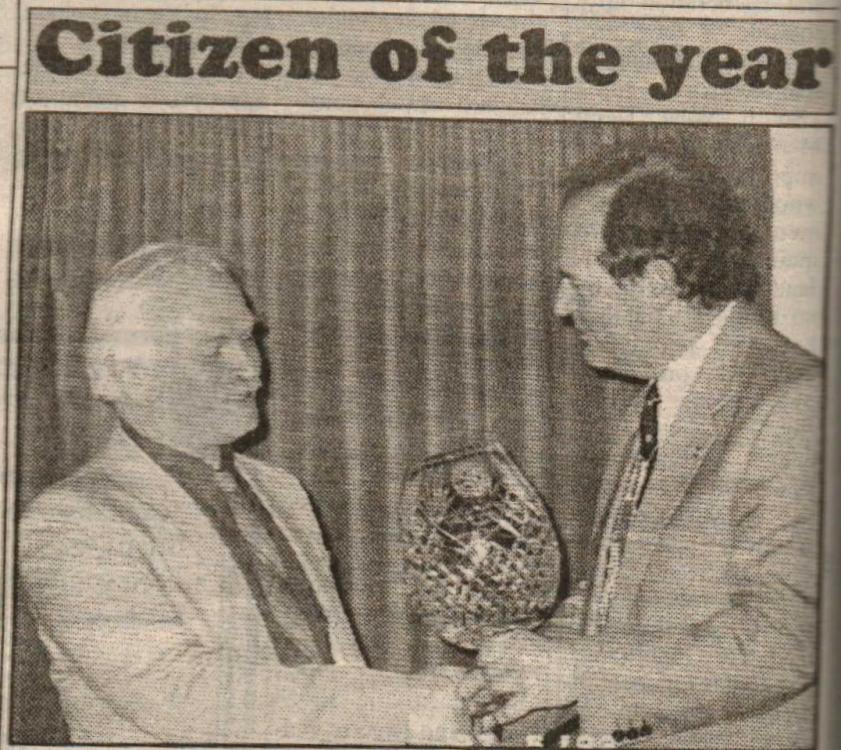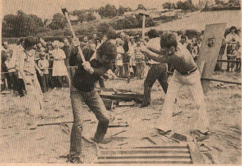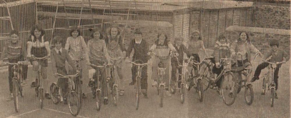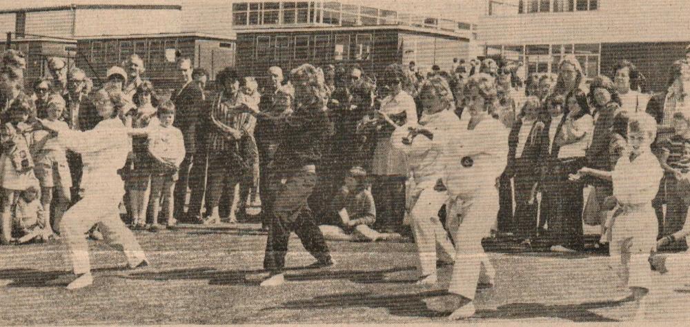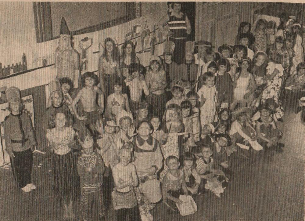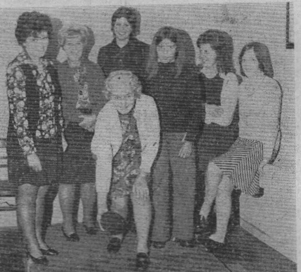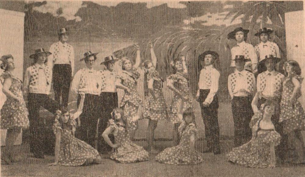Mr Bill Finn, Gordon Harris, Graham Moore, Mike Harris, Jimmy Harris, Len Daniel, Billy Evans and Roy Drew wait to tuck into a plate of turkey.