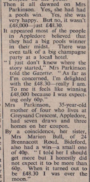 "It's like pennies from heaven - it's absolutely wonderful" said Miss Mollie Douglas, matron of Broomhayes, Northam, when yesterday a cheque as handed to her for £1,000.