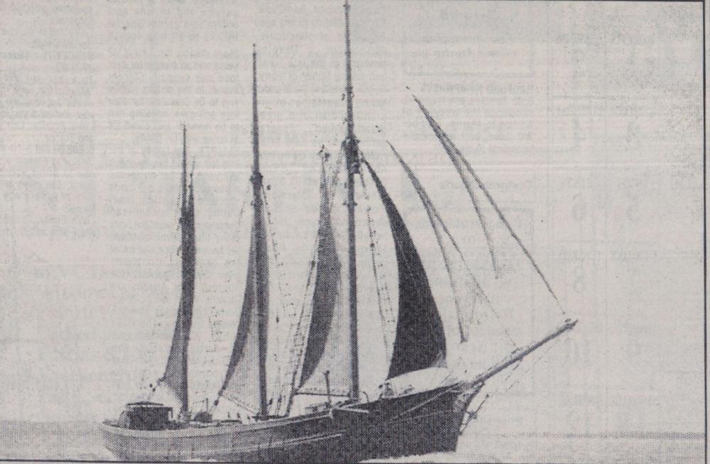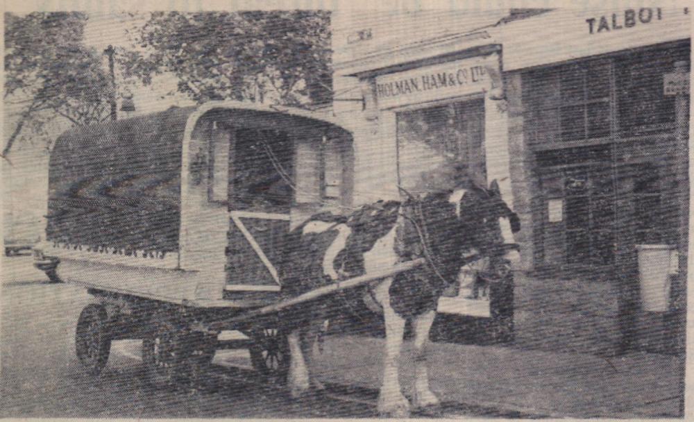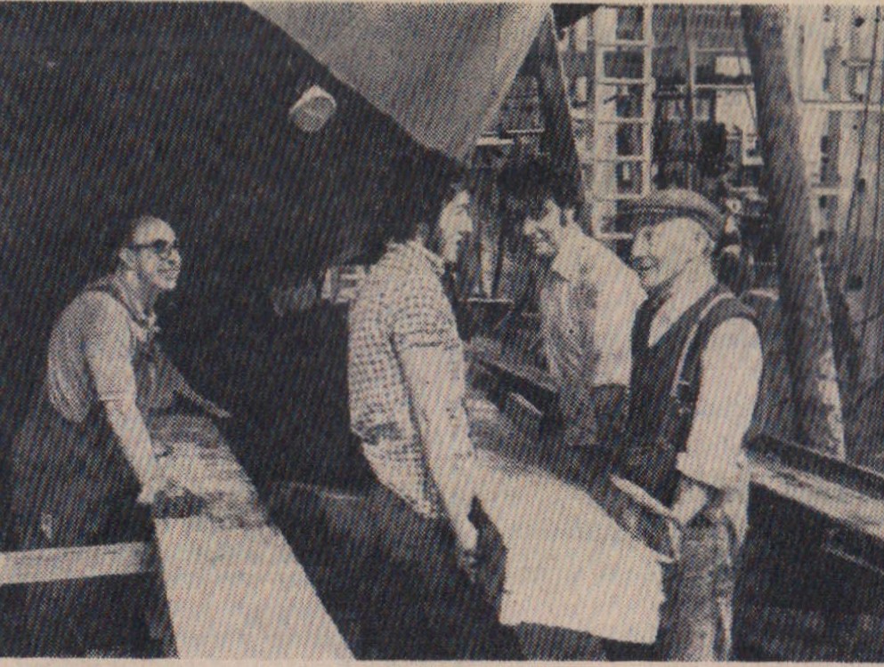 Mr Bill Finn, Gordon Harris, Graham Moore, Mike Harris, Jimmy Harris, Len Daniel, Billy Evans and Roy Drew wait to tuck into a plate of turkey.