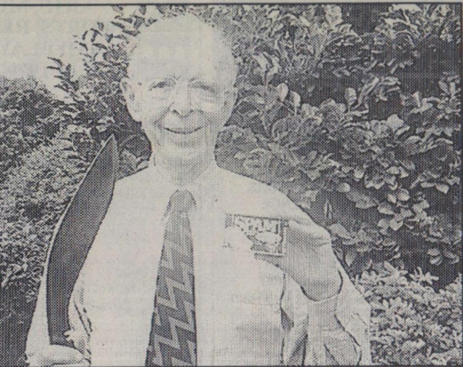 The Deputy Mayor Alderman Cecil Cann hands out a loaf of bread to 82-year-old Mr Thomas Johns