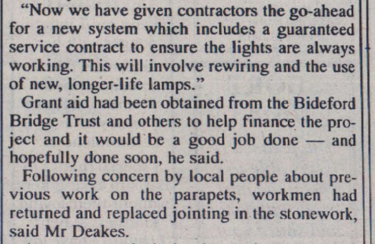 Costing £20,000-£25,000, the repair work on Bideford's venerable Long Bridge is expected to finish in late spring.
