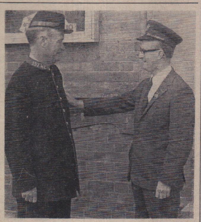 The Deputy Mayor Alderman Cecil Cann hands out a loaf of bread to 82-year-old Mr Thomas Johns