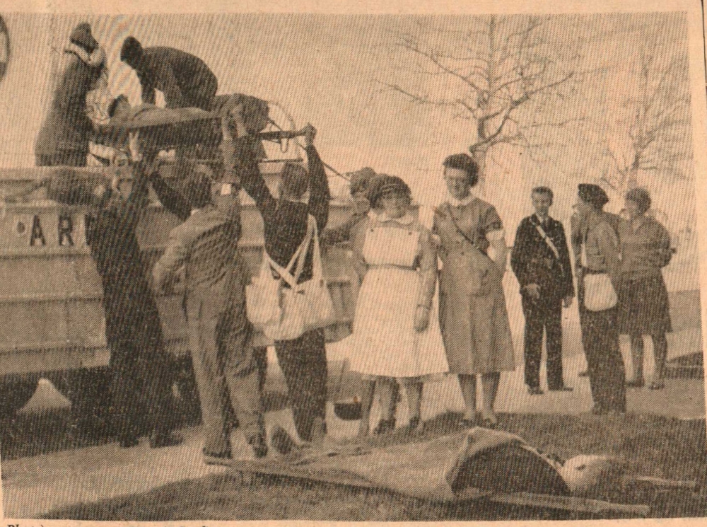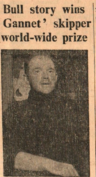 Mr Bill Finn, Gordon Harris, Graham Moore, Mike Harris, Jimmy Harris, Len Daniel, Billy Evans and Roy Drew wait to tuck into a plate of turkey.