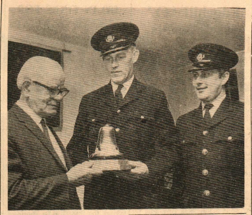 The Deputy Mayor Alderman Cecil Cann hands out a loaf of bread to 82-year-old Mr Thomas Johns