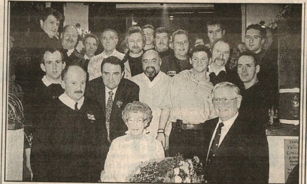 On behalf of Hartland A.F.C., Ron Watson receives the championship trophy for the Kingsley League Division 1.