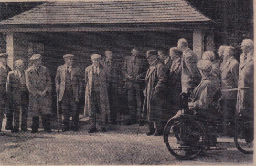 The Deputy Mayor Alderman Cecil Cann hands out a loaf of bread to 82-year-old Mr Thomas Johns