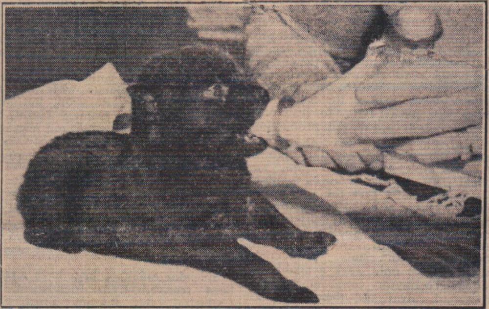 The Deputy Mayor Alderman Cecil Cann hands out a loaf of bread to 82-year-old Mr Thomas Johns