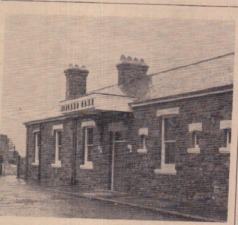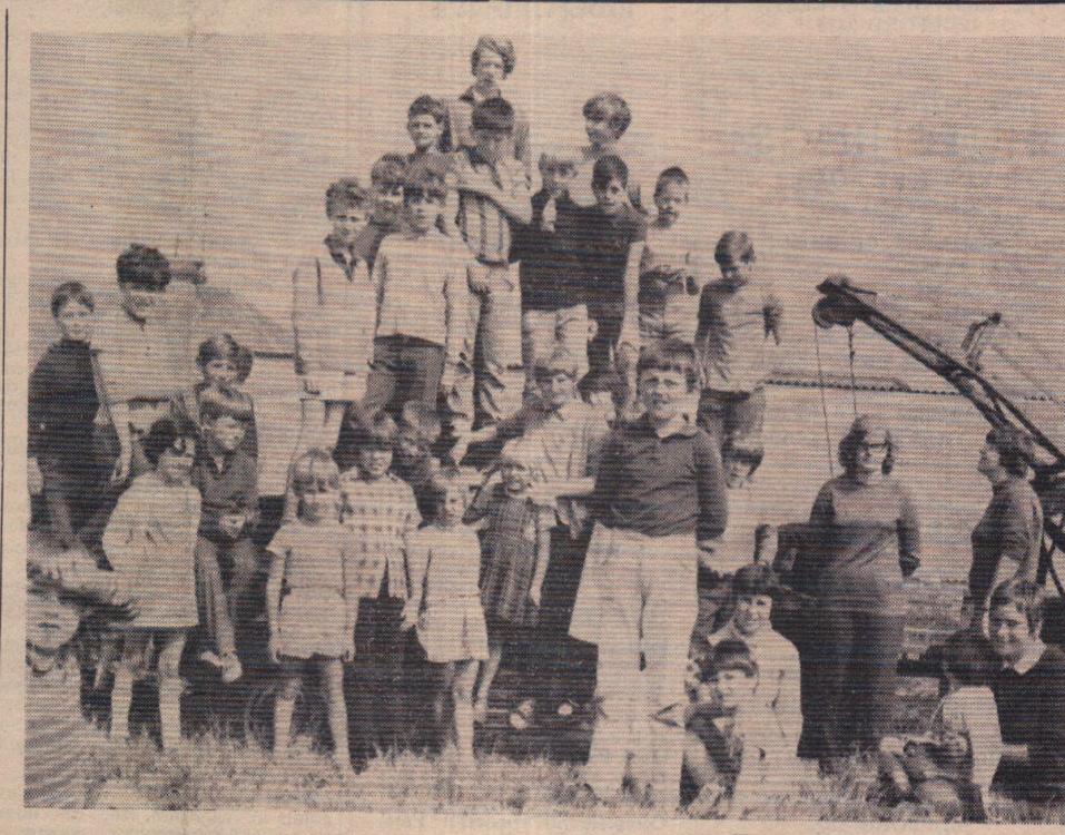 Mr Bill Finn, Gordon Harris, Graham Moore, Mike Harris, Jimmy Harris, Len Daniel, Billy Evans and Roy Drew wait to tuck into a plate of turkey.