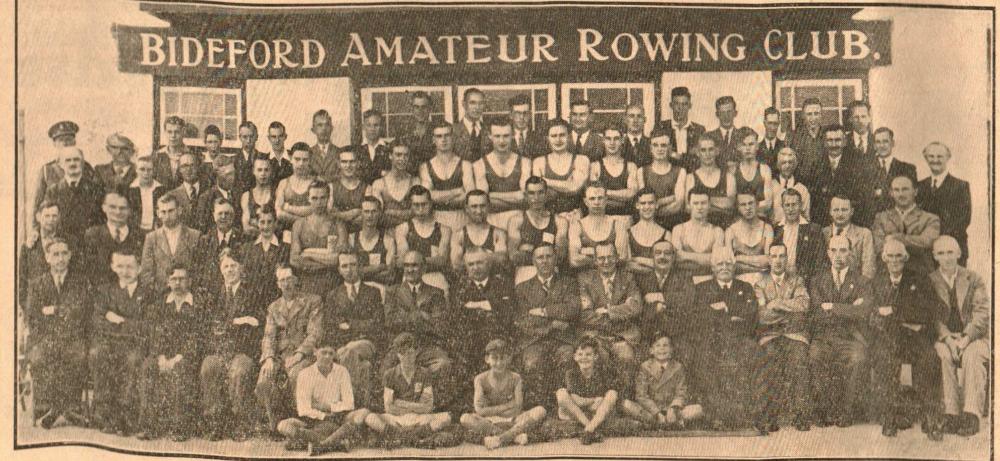 Mr Bill Finn, Gordon Harris, Graham Moore, Mike Harris, Jimmy Harris, Len Daniel, Billy Evans and Roy Drew wait to tuck into a plate of turkey.