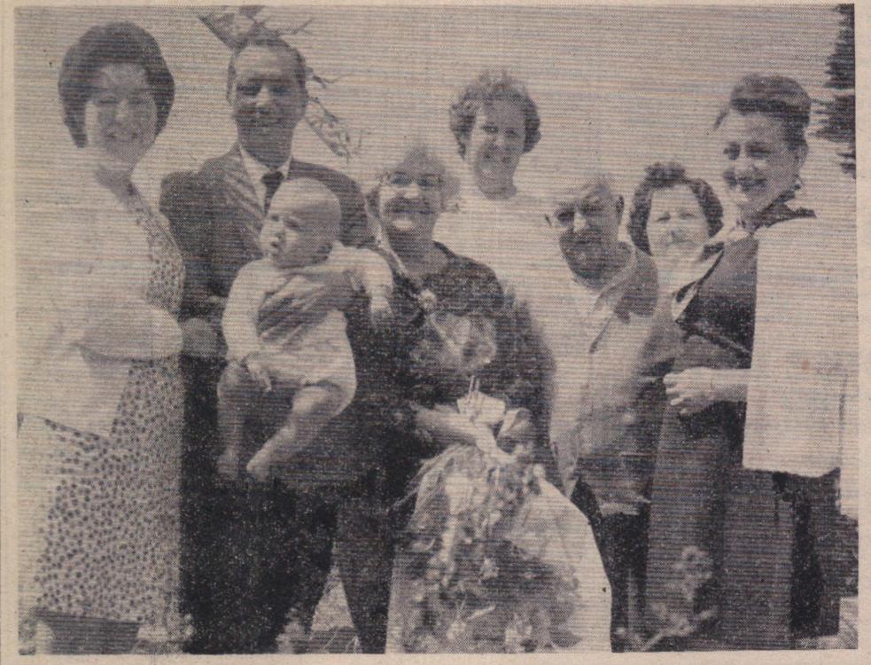 Mr Bill Finn, Gordon Harris, Graham Moore, Mike Harris, Jimmy Harris, Len Daniel, Billy Evans and Roy Drew wait to tuck into a plate of turkey.