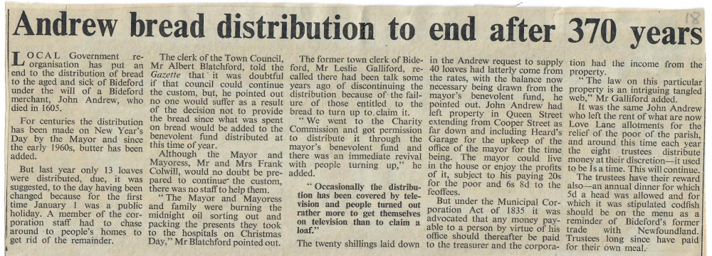 The Deputy Mayor Alderman Cecil Cann hands out a loaf of bread to 82-year-old Mr Thomas Johns