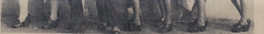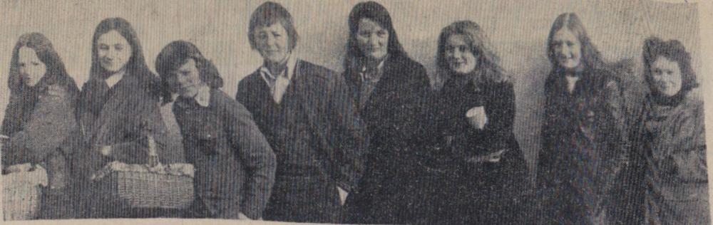 Mr Bill Finn, Gordon Harris, Graham Moore, Mike Harris, Jimmy Harris, Len Daniel, Billy Evans and Roy Drew wait to tuck into a plate of turkey.