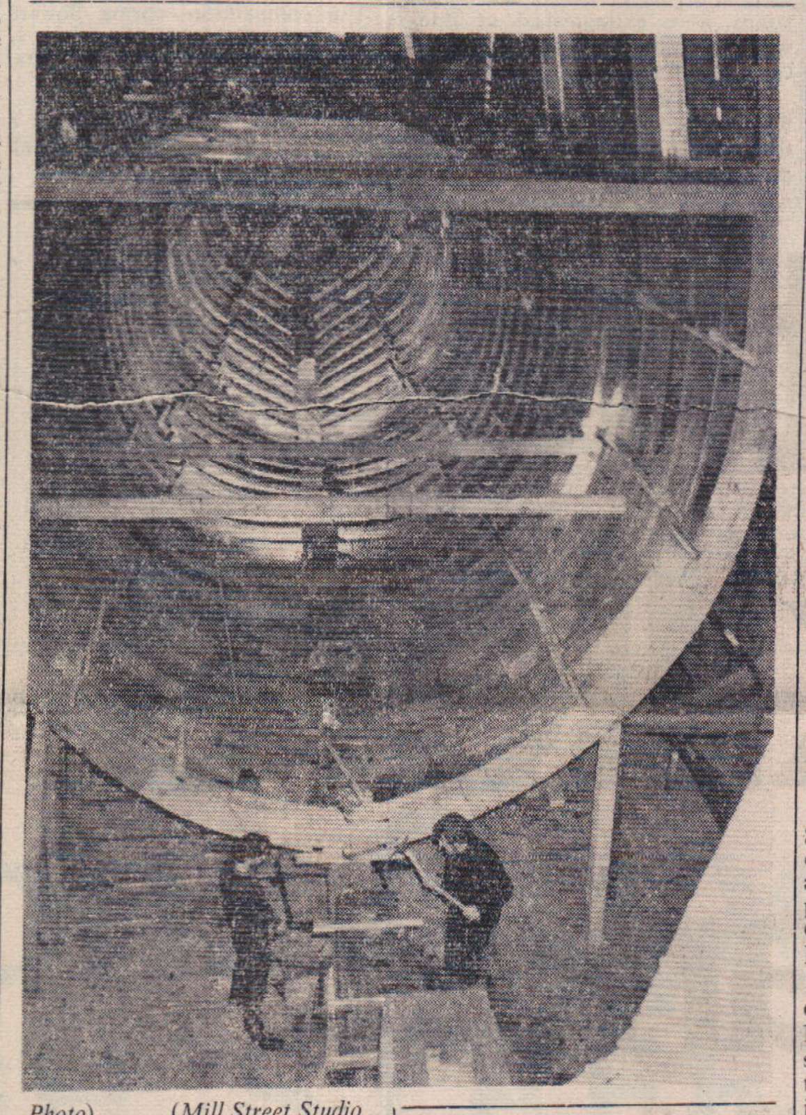Mr Bill Finn, Gordon Harris, Graham Moore, Mike Harris, Jimmy Harris, Len Daniel, Billy Evans and Roy Drew wait to tuck into a plate of turkey.
