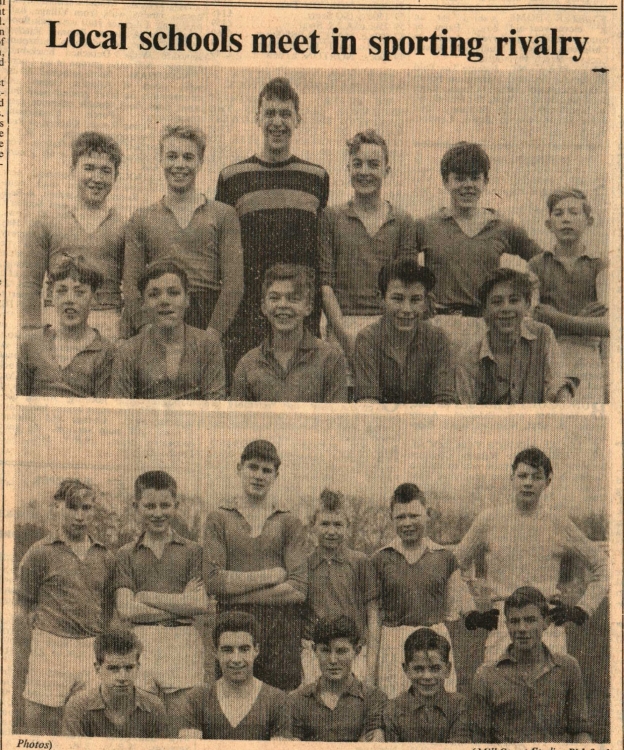 Mr Bill Finn, Gordon Harris, Graham Moore, Mike Harris, Jimmy Harris, Len Daniel, Billy Evans and Roy Drew wait to tuck into a plate of turkey.