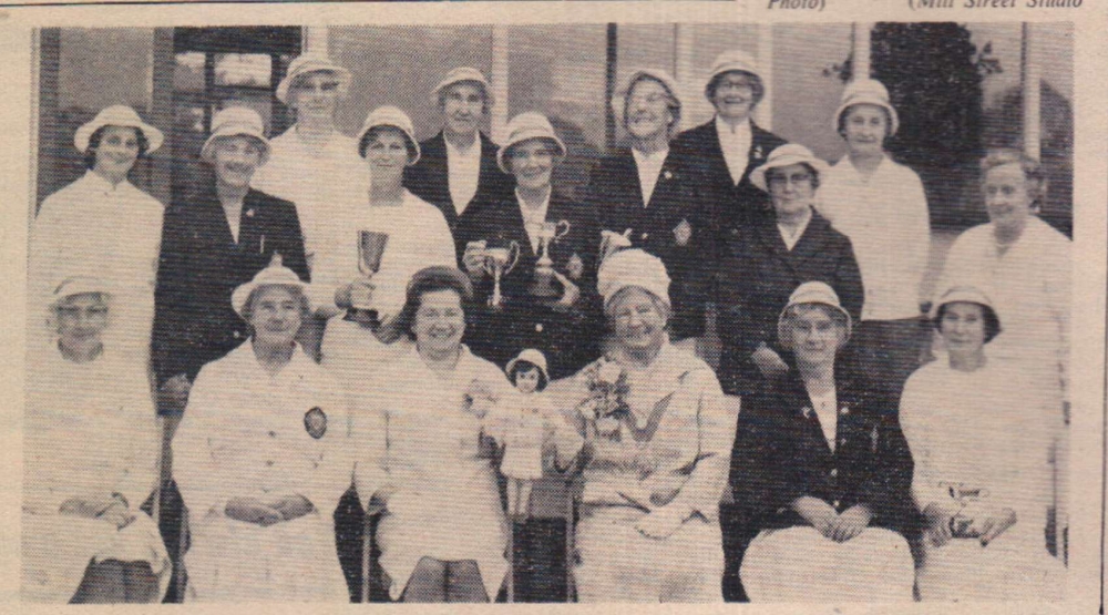 Mr Bill Finn, Gordon Harris, Graham Moore, Mike Harris, Jimmy Harris, Len Daniel, Billy Evans and Roy Drew wait to tuck into a plate of turkey.