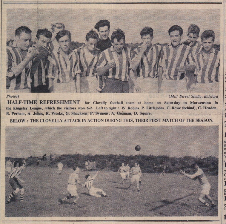 Mr Bill Finn, Gordon Harris, Graham Moore, Mike Harris, Jimmy Harris, Len Daniel, Billy Evans and Roy Drew wait to tuck into a plate of turkey.