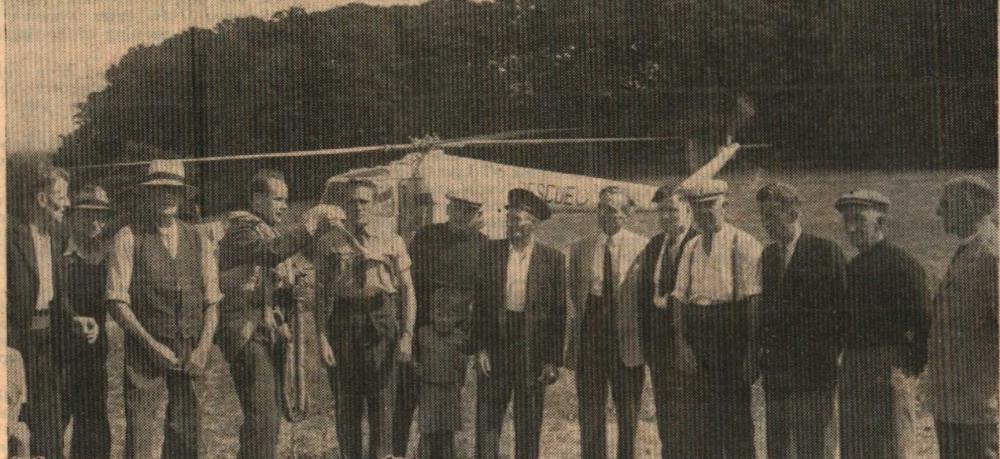 Mr Bill Finn, Gordon Harris, Graham Moore, Mike Harris, Jimmy Harris, Len Daniel, Billy Evans and Roy Drew wait to tuck into a plate of turkey.