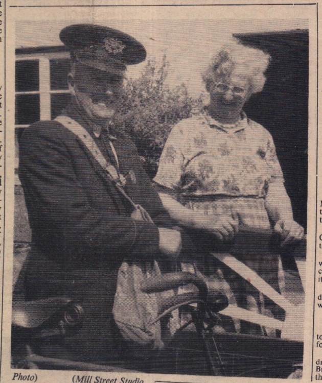 The Deputy Mayor Alderman Cecil Cann hands out a loaf of bread to 82-year-old Mr Thomas Johns