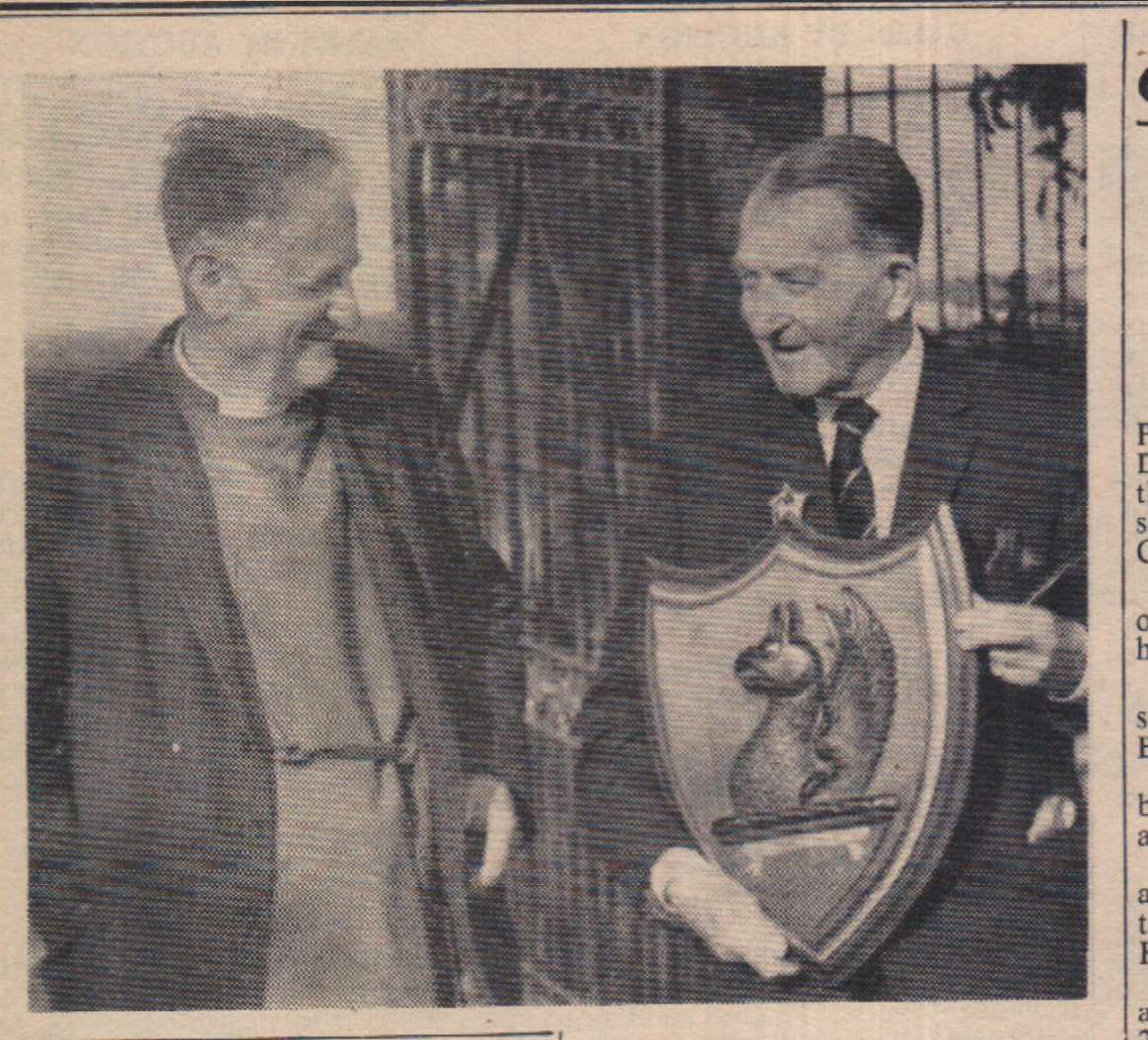 The Deputy Mayor Alderman Cecil Cann hands out a loaf of bread to 82-year-old Mr Thomas Johns