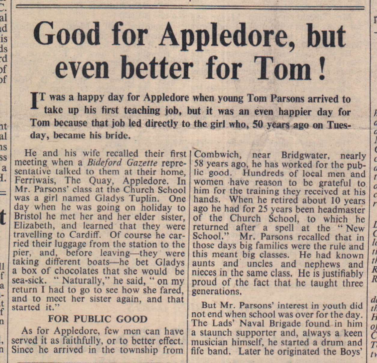 "It's like pennies from heaven - it's absolutely wonderful" said Miss Mollie Douglas, matron of Broomhayes, Northam, when yesterday a cheque as handed to her for £1,000.