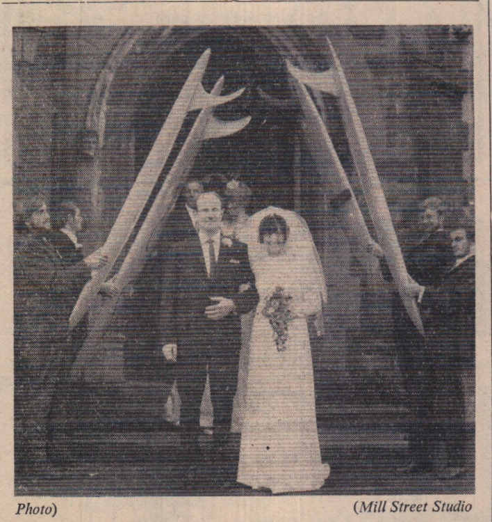 Mr Bill Finn, Gordon Harris, Graham Moore, Mike Harris, Jimmy Harris, Len Daniel, Billy Evans and Roy Drew wait to tuck into a plate of turkey.