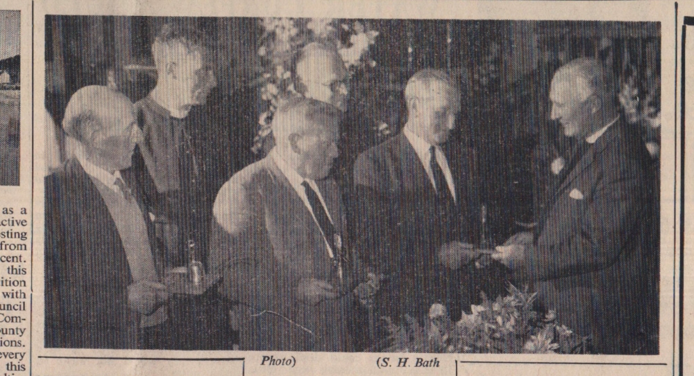 Mr Bill Finn, Gordon Harris, Graham Moore, Mike Harris, Jimmy Harris, Len Daniel, Billy Evans and Roy Drew wait to tuck into a plate of turkey.