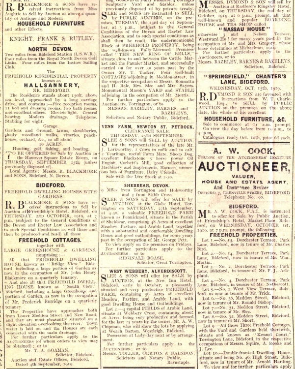 Towards the end of September a story about the controversy regarding the Bideford War Memorial and the Chudleigh Fort area of East–the-Water is given four complete columns of the six on the page. Remarks like “this site 300 years ago was where men fought for truth and righteousness” added to a very contentious situation. If you are curious about the outcome please visit us and we will show you the newspapers.