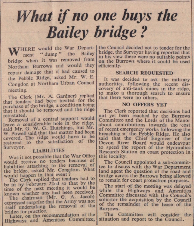 What will happen to the Bailey bridge on Northam Burrows? The issue was discussed in the House of Commons - Hansard