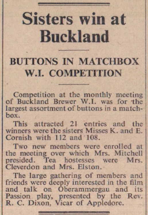 At Buckland Brewer WI, sisters Misses K and E Cornish won the competition.
