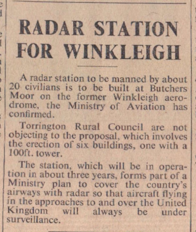 A radar station is to be built at Butchers Moor, Winkleigh.