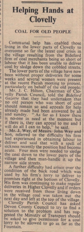 Communal help for those who live in the lower part of Clovelly during the latest coal crisis and shortage of labour.