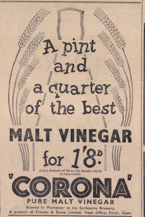 Buy malt vinegar from Corona for 1’ 8d.