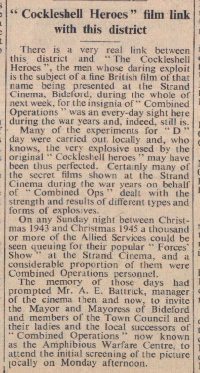 ‘Cockleshell Heroes’ film to be shown at the Strand Cinema and there's a link with this district.