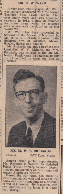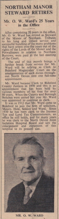 Mr O W Ward has retired as Steward of the Manor of Northam after 25 years. He has been succeeded by Mr M W V Richards.