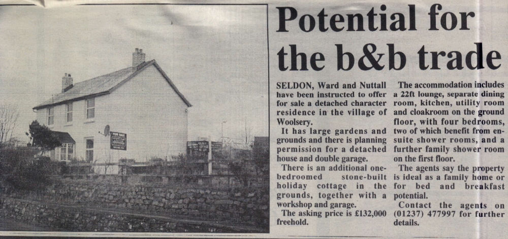 Household furniture, valuable oil and water colour paintings, etc. from Coombe Ridge, Raleigh, Bideford, and Woodside, Weare Giffard, are for sale; and purchasers of parts of the Stevenstone Estate are detailed - Burwood Farm, sold to Mr Thomas Hookway; Ley Farm, secured by the tenant Mr Thomas Tanton; small holding near Town Mills and fields sold to Mr Buckland of Torrington; North Healand Farm sold to Mr James Barrow; Burwood Meadow to Mr John Puddicombe; Great Meadow, Mr Alfred Burridge of Torrington; Barn Park, Mr John Millman of St Giles; Great Field to Mr W H Hookway, St Giles.