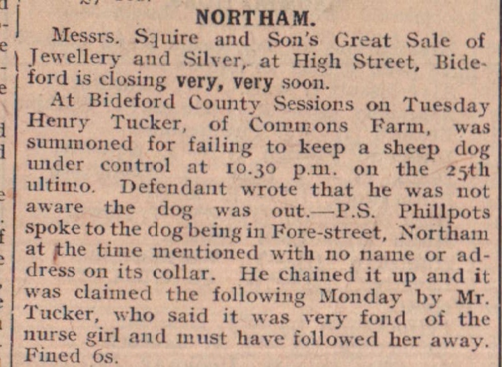 Mr Henry Tucker of Commons Farm, Northam, is summoned and fined 6s.