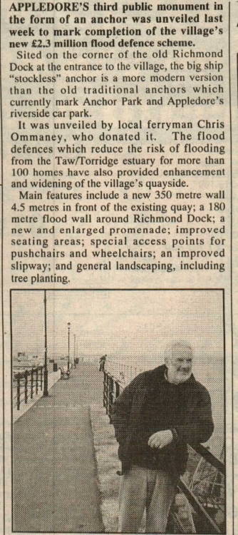 At Appledore, a third public monument to mark completion of the village’s flood defence scheme was unveiled by local ferryman Chris Ommaney.