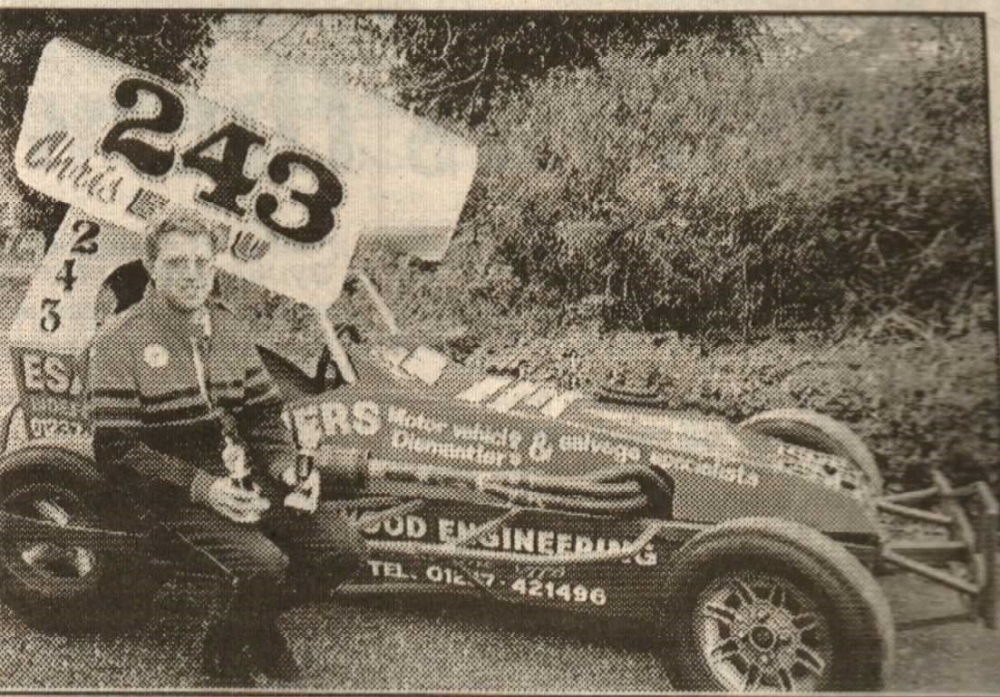 Chris Esau, 33 years old, of Bideford, aiming to be a World Champion stock car racer like his Uncle Jim. Just starting his second year of competitive racing, Chris is still a learner but he has made good progress – progressing from novice through Grade C to a British Stockcar Association Grade B or Formula 2 place this season. He is the only North Devon racer competing at this level. It is an expensive sport, which is why Chris is deeply indebted to his sponsors Esau Brothers, Colin Higman, A E Motors and Bowood Engineering for enabling him to stay in the race. Uncle Jim is one of the Esau brothers who run a Bideford vehicle breakers’ yard. It was his involvement in stock car racing which has had young Chris interested in the sport from early childhood. The hobby was continued with his wife Jacqui who has travelled with Chris all over the country as spectators before he finally got a car of his own.