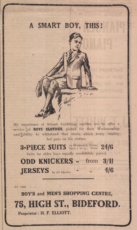 And to finish April 1922, you can buy 'odd knickers' from H F Elliott, 75 High Street, Bideford.