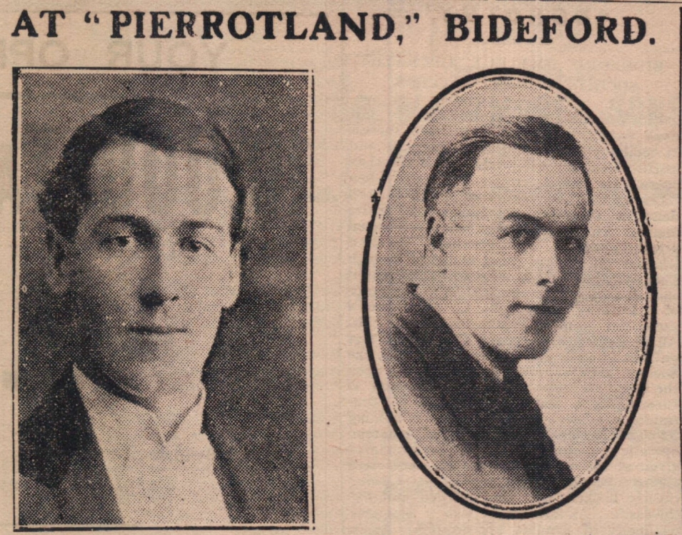 Mr Will Pfounds, who is with the Pierrotland Party, is a comedian producer with a large and varied experience. He has come to Bideford direct from London Hippodrome and London Coliseum, where he has been playing responsible parts and producing in Messrs De Courville and Wylie and Tates' big West End productions. He has a quiet, spontaneous humour which is highly appreciated and he is an established favourite with Pierrotland. No one should miss this opportunity of seeing him which he is with the party. Mr Ron Currie, at present appearing at Pierrotland, Bideford, is a comedian well known in the London area, likewise the North of England, having recently terminated a successful pantomime season as Widow Twankey in Aladdin at the Opera House, Leicester. He is only in Bideford for a few weeks and those who appreciate 'spontaneous subtlety' should not miss seeing him.