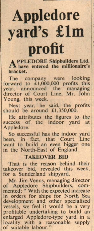 Appledore Shipbuilders Ltd are looking forward to £1,000,000 profits this year, announced Mr John Young, the managing director of Court Line.