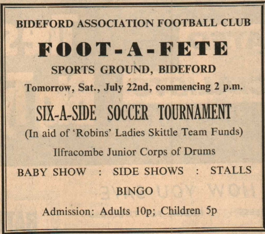Bideford Association Football Club hold a Foot-a-Fete at the Sports Ground in Bideford.