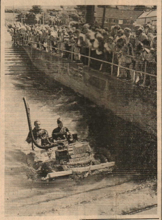 Vehicles going through water with the drivers submerged up to their necks will be one of the attractions of an Open Day to be held at a unique Army establishment in North Devon. For the first time, the Fording Trials Branch of the Royal Electrical and Mechanical Engineers at Instow is opening its doors to the public, and a variety of demonstrations will be given. Divers, of which the Fording Trials Branch has seven, will give demonstrations in portable tanks and will show their skill by recovering pennies thrown by spectators.