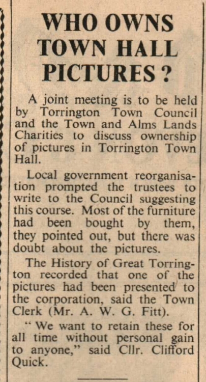 A clergyman’s wife who is strictly a once-a-week painter at the Beaford Centre carried off the best in show award at Shebbear and Buckland Filleigh flower and vegetable show. Mrs R A Wallington, wife of the Rector of Langtree, won the award. Last year over a thousand entries were received for the show. This year entries were down a little and Mrs M E Dart blamed both the earlier bad weather and the hay harvest which had now started for the drop. Two cups were won outright - the Millman Cup for most points in the onion and shallots classes by Mr Edgar Moore of Shebbear, and the Committee Cup for most points in the open vegetable classes by Mr Fred Millman, of Petrockstowe. The event was opened by the Rev Nigel Mead, Vicar of Shebbear.