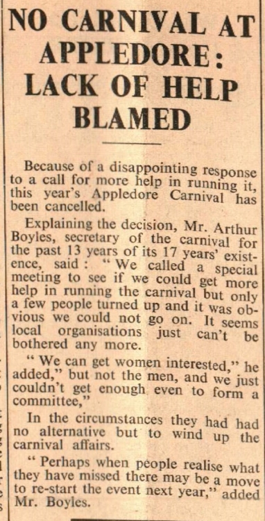 Mr Arthur Boyles explains why Appledore’s Carnival has been cancelled.