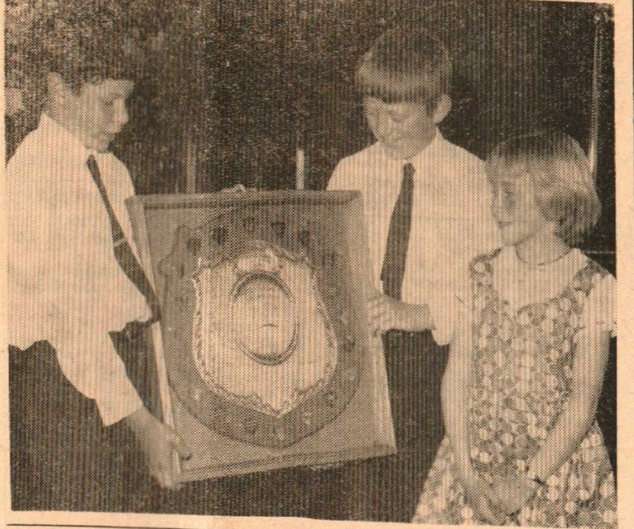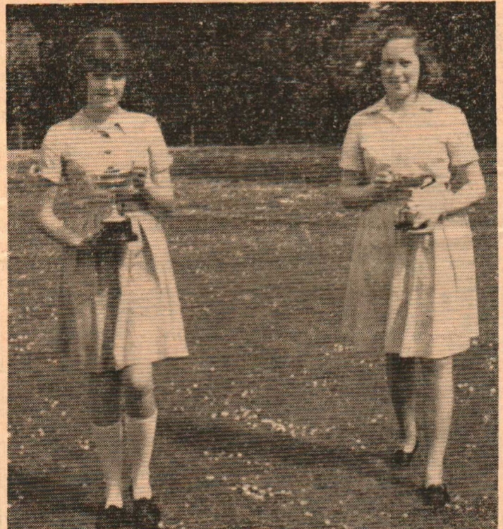 In the printed list at Edgehill College prize day the names of recipients of two awards were not given but were left to be announced at the ceremony. The awards were for deportment, also recognising attention to personal appearance and general smartness. The recipients were Lynda Beer, seen with the Yeo Cup for juniors, and Erica Smith with the Margaret Cup for seniors.