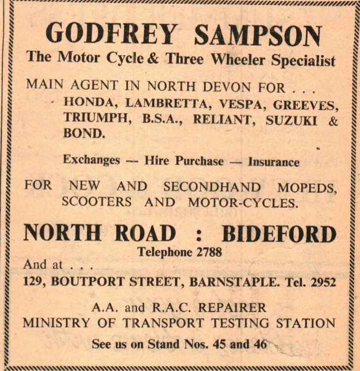 Motor trials experts beware – a promising newcomer from Bideford has appeared on the scene. At the wheel of his standard Hillman Imp, and taking part in his first trials event, 18 year old Geoff Giddy gave the aces a jolt at the recent Holsworthy and District Motor Club trials. Geoff, son of Mr and Mrs Ivor Giddy, of Bideford Carpet Service, High Street, had John Holcombe, of 80 Abbotsham Road, as his compulsory passenger.
