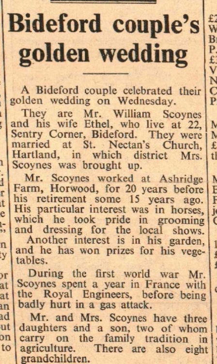 Mr and Mrs Scoynes of 22 Sentry Corner, Bideford, celebrate their golden wedding.